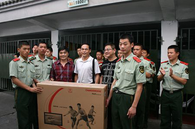 有感于武警官兵们紧张、枯燥的军营生活,青工委同志特意挑选了一台电视机送到驻地。在慰问仪式上,孟建新副主委、刘建杨主任分别代表民进绍兴市委会、市委会青工委作了慰问讲话,对武警官兵在卫国卫民方面所作的贡献表示感谢,并高度赞扬了武警官兵的勤勉、刻苦、牺牲等崇高精神。