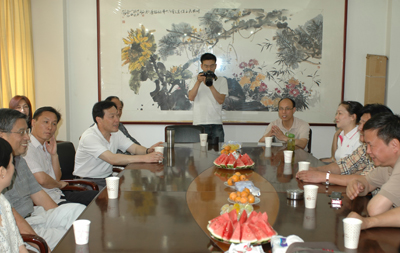 正准备出差的徐博候副主委得知文艺支部来访,特意推迟出发时间接见了大家,并发表了热情洋溢的讲话。他代表民进浙江省委会欢迎基层支部会员的到来,指出,看到文艺支部的会员老中青三代结合,既富有协作精神,又充满活力,相信在民进金华市委会的领导下一定能开创支部工作新局面。