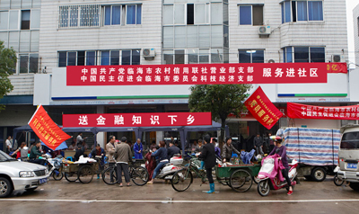 上午是邵家渡的集市日,服务队设摊服务,开展零损币兑换、假人民币识别、金融业务咨询、价格咨询、工程质量咨询等服务,为16位民众开展整币兑换零币3万多元,发放金融业务、银行卡用卡安全和反假币、反洗钱、《金融保险服务送农村实用知识手册》、《农民金融知识简明实用手册》等宣传资料200多份,共有350多位民众接受了各项咨询等服务。下午,服务队深入农村了解种养殖大户的生产资金情况,对发展前景好而生产资金暂时紧缺的,提交临海市农村信用联社营业部及时予以信贷支持。民进的医生会员们开展上门服务,为老党员、金牌信用户和村民们提供医疗咨询等服务,深受村民的欢迎。