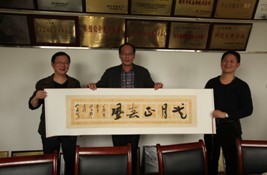 高岚处长、张跃西主任和魏建刚向江山市委统战部、江山民进总支和茶之语赠送书法作品