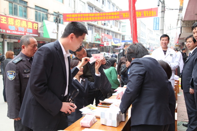 服务队向渔民们发放了《金融保险服务送农村实用知识手册》、《银行业务人民币支付结算》、《预防洗钱 遏制犯罪》、《“金手指”兴农富民系列贷款》、《丰收小额贷款卡》和医疗保健等宣传资料550份,讲解伪钞设别知识,介绍银行存贷款、结算等业务,开展整币兑换零币、零币调整币、零破币调换、六个科别的医疗咨询等,服务群众600多人次,受到了当地民众的好评。