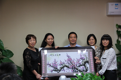 仪式上,赵夏娟副主委代表市委会向支部赠送了相关书籍,她勉励全体会员更好地做好本职工作,更多地利用好活动室开展各项活动,为学校发展建言献策。慈湖中学王琪副书记发表讲话,对民进支部提出了殷切希望。支部会员向学校和市委会表示衷心的感谢,纷纷表示将充分利用好这个活动室,凝心聚力,履行好各项工作。支部向学校赠送了由会员施曲菲老师绣的十字绣匾以祝贺学校百十华诞。