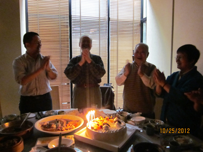 庆祝会员八十大寿,是浙江外国语学院支部的优良传统。支部会员济济一堂,其乐融融,共述友情,交流养生,展望未来。活动中,大家齐唱“生日快乐歌”,分享生日蛋糕,品尝长寿面。