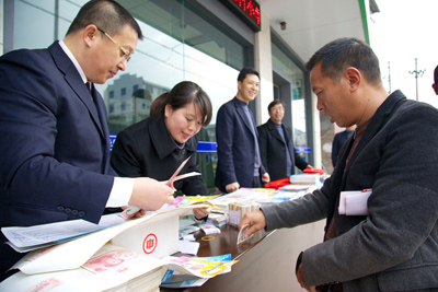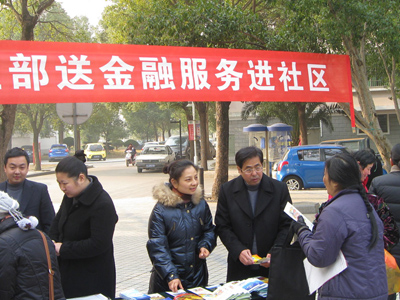 (图)民进临海市科技经济支部送春联和金融服务进社区
