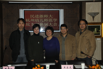 会议按照选举办法,选举产生了民进浙江师范大学杭州幼儿师范学院支部新一届委员会,委员会由钱丹、吕耀坚、李成、朱蓓凌、董文明组成,钱丹担任主任。钱丹代表新一届支部委员会表示,新班子要在学校党委和民进省委会的领导下,在校统战部的具体指导下,传承优良传统,依靠全体会员的共同努力,踏实工作,开拓创新,把民进幼师支部工作推上一个新的台阶。其他几位成员也分别发言表态。