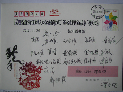 在观赏一枚枚签名封的同时,我们也深深地为谭老热爱生活、锲而不舍的追求与境界所感动。谭老还特地为此次活动制作了签名封,全体与会人员非常高兴地在签名封上留下签名。