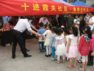 民进苍南总支副主委丁云铭和总支原副主委、龙港医院副院长曾晓燕带领民进组织中的苍南名医和县人民医院各科室的十几名医务人员细心地为居民把脉问诊、测血压血糖、开处方、指导用药、解答咨询,并免费提供价值近8000元的各类药品60多种。来自正昌律师事务所的3名律师将法律援助服务送到居民家门口,并承诺以后每个星期二都将来社区为居民继续提供法律援助服务。民进苍南总支社会服务部主任陶恒联系民进会员企业天客隆超市、老中医化妆品则为社区的困难、留守儿童免费提供300多份包含学习用品和零食的礼品,并预祝社区儿童节日快乐。据统计,此次民进会员提供医疗、法律、企业咨询共达600多人次。此次的社会服务活动受到广大居民的一致好评,扩大了党派的社会影响力,取得了很好的工作实效。