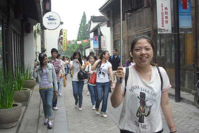 据悉,本次活动以“爱的交流无国界 无障碍”为主题,经过周到的考虑与策划安排,共有来自浙江特殊教育职业学院的14名聋生,在浙江旅游职业学院旅行社管理系19位同学和来自浙江理工大学文化传播学院的6名留学生陪同下,顺利游览了京杭大运河杭州景区。一天时间里,聋生们乘坐了漕舫,游览了京杭大运河博物馆、中国刀剪剑博物馆、中国伞博物馆、杭州工艺美术馆,并开展了定向寻宝的游戏。虽然他们听不到声音,但是通过眼神、微笑、肢体、纸笔等交流途径,聋生们深切感受到了活动策划和主办者以及旅院学子为他们带去的关爱与支持,他们用真挚的微笑向所有关心他们的人表示了感谢。