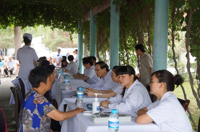 7月的新疆天气晴朗,阿克苏白天气温超过35度,严峻的形势丝毫没有影响支部支医帮扶的决心,队员们个个精神振奋、热情饱满地投入到工作中。