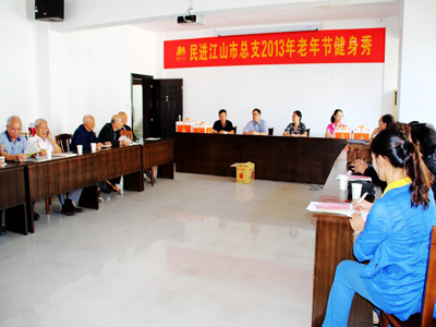 10月13日上午,民进江山市总支部在中山路民主党派楼举行2013年老年节健身秀活动,总支主委陈林洪,副主委毛艳萍、王以祥、王小芳,委员刘立忠、周坚、郑卓飞、陈小慧与30多名到场的会员欢聚一堂,共同庆祝我国第一个法定“老年节” 和我省第26个“老人节” 。