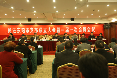 成立大会由民进金华市委会专职副主委吴瑞成主持。民进浙江省委会副主委陈亚岗出席大会并作重要讲话。民进省委会秘书长刘毅,民进金华市委会主委张少华,中共金华市统战部副部长何蔓丝,以及东阳市政协主席王正明、副市长龚俊俊、人大副主任楼美姣、市委统战部部长施侍良到会并在主席台就座。