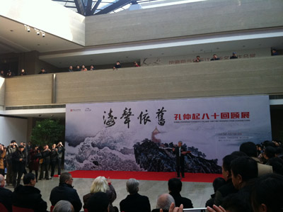 支部首先组织全体会员到浙江美术馆参加由中国美术学院、浙江美术馆主办的“涛声依旧——孔仲起八十回顾展”开幕式。展览共展出美院支部会员、中国美术学院中国画系教授孔仲起先生作品150余件,由浙江美术馆藏品和孔仲起先生自藏作品组成,涵盖山水、花鸟、人物诸画种,以山水画为主。展出作品中,最早的作品是孔先生15岁时所画的《博古图》,最晚的是今年创作的《黄山写生》,参展作品的时空跨度长达65年。展览较为全面地反映了孔仲起先生艺术风貌的形成轨迹和一位卓有成就的画家成长的历程。(注:孔仲起,又名孔庆福,祖籍浙江慈溪,1934年生于上海,为当代著名山水画家、中国美术学院资深教授、学位委员、西泠印社社员,享受国务院授予的有特殊贡献的津贴。)今年适逢孔仲起先生八十寿诞,为奖励和答谢孔仲起先生的捐赠义举,浙江美术馆为孔仲起先生举办个人画展,并编辑出版《浙江美术馆藏孔仲起作品集》。展览至12月20日结束。