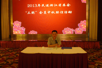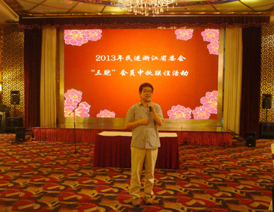 9月12日,民进浙江省委会“三胞”会员联谊会在杭州举行中秋联谊活动,省委会副主委赵光育、秘书长刘毅以及60余位来自省直各支部的“三胞”会员和省委会机关干部参加了活动。活动由刘毅秘书长主持,赵光育副主委代表省委会向“三胞”会员及他们的亲朋好友致以节日的祝贺和亲切的慰问。