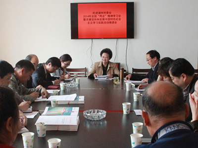 3月26日,民进湖州市委会召开2014年全国“两会”精神学习会暨开展坚持和发展中国特色社会主义学习实践活动推进会。湖州市政协副主席、民进湖州市委会主委沈琪芳,副主委郑勇、李红出席会议,各基层组织负责人,专委会、联谊会主任,市级人大代表和政协委员参加会议。