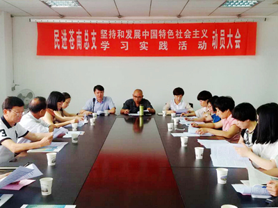 6月6日上午,民进苍南总支开展坚持和发展中国特色社会主义学习实践活动动员大会在苍南县行政中心隆重召开。民进苍南总支副主委丁云铭代表总支作动员讲话并宣读了《民进苍南总支关于开展坚持和发展中国特色社会主义学习实践活动实施方案》以及具体工作安排,副主委林峰解宣读了总支领导和支部主任结对新会员名单和总支关于调整职能科室组成人员的通知,副主委傅美丹组织新会员学习了中国民主促进会章程