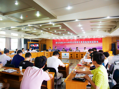 6月13日上午,由浙江省社会主义学院副院长赵向前、教务处处长沈慧虹带队的2014年民主党派中青年骨干培训班学员,到民进临海市科技经济支部举行现场教学活动。