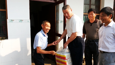 4日上午,曹兴强出资购买六份慰问品(一袋30斤大米、一桶