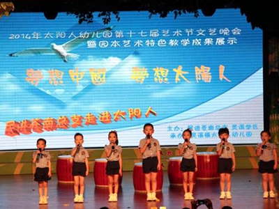 太阳人幼儿园创新编排了《我们的节目 》、《鼓舞飞扬》、《新梨园新蕾》等16个节目,孩子们以稚嫩的童声、优美的舞姿、动情的表演,精彩演绎了音乐剧、舞蹈、戏曲等节目,赢得了在场观众的阵阵掌声;家长们以激情四射、诙谐创意的表演,为整场演出增色不少;师生同台、亲子互动的表演形式使活动亮点纷呈。