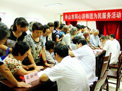 市民主党派“同心”讲师团组建于2012年5月,成员来自舟山市各民主党派,两年多来,该团践行“同心”思想,已组织四次大型活动,重点为偏远地区群众提供科技、医疗、教育、法律等方面的服务,受惠民众上千人。