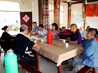 在曹宅村老年协会,会员们与老人们进行了亲切座谈,关心地询问村里老人的生活情况,提前为他们送上重阳节的节日问候,并送上了5000元慰问金。