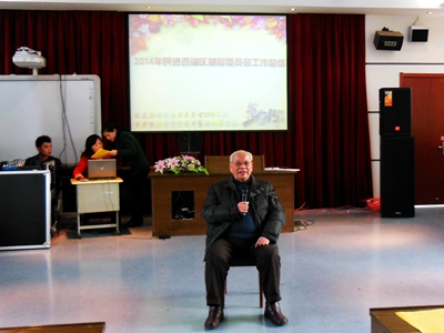 91岁高龄的原民进西湖总支主任朱世清来到了活动会场,发表了热情洋溢的讲话。台下的老会员也情不自禁地回忆起朱老师担任总支主任时,对每一位会员的关心和爱护。暖暖的爱意在每个人心间流淌,大家对这位德高望重的老前辈更加敬重,对民进会组织更加热爱。2014年新入会的民进会员上台进行了自我介绍。