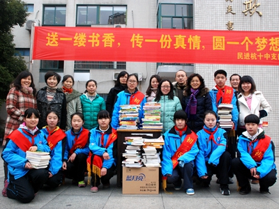为响应民进中央开展公益活动的号召,秉承“服务在身边,人人可参与”的微公益理念,民进杭州市委会决定在全会开展“书香彩虹”的公益活动,为贵州省金沙县贫困学生募捐图书。为了给“书香彩虹”活动添一缕香,民进杭十中支部主任蔡晏燕发出倡议,支部所有会员积极响应,经过集体讨论最后决定,由少年队大队委牵头在全校师生中进行募集。