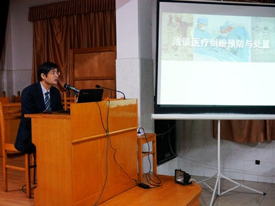6日傍晚,寒风凛冽,昔日热闹的西塘古镇也陷入了静寂,但嘉善二院三楼的宣教室里却挤得满满当当,连过道里都摆满了座位,后排还有很多站着的人。民进浙江省委会副主委、浙大附属义乌医院院长、国内著名传染病专家陈亚岗在这里为嘉善二院的全体医护人员、西塘各社区的医卫工作者作了题为《浅谈医患纠纷预防与处置》的讲座。陈亚岗副主委在讲座中强调,每一位医卫人员要注重从身边事做起,把“质量、服务、安全”作为管理的永恒主题,把“职业操守、沟通和爱心”作为医患和谐的基础,才能做好服务工作。他希望每一位医卫人员都要牢记希波克拉底誓言,用高尚的职业操守,持续改进的医疗质量,改善目前的医患关系。
