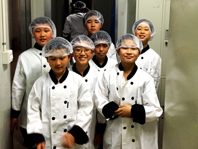 在区市场监督管理局工作人员的带领下,调研小组来到了杭州优卡食品有限公司。同学们与企业工作人员一起按照规范要求进行操作,从穿上卫生服和卫生帽、洗手消毒吹净,到原辅料验收领用,再到加工制作,最后成品检验,亲身体验了食品生产各个环节。同学们还针对食品生产操作规范、添加剂使用、原辅料来源等社会关注热点,纷纷提出了自己的想法和问题。陪同的企业工作人员给予了耐心解答。在参观调研的最后,同学们还结合前期查阅的信息和现场参观情况,提出了自己对食品生产安全的看法。