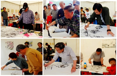 5月9日,在第11届中国国际动漫节建德专场开幕之际,建德开明画院为进一步弘扬扶贫救困的传统美德,在新安江广场举办了一场现场书画创作慈善义卖活动。院长胡承斌,副院长何恃伟、鲍焕等20余位书画家来到现场,发挥各自特长,创作60多幅书画作品,其中20余幅字画被认购,所得款项作为慈善救助资金,全部捐赠给建德市慈善总会。虽然创作场地简陋、条件较差,且天气不作美,画师们只能在创作棚内吃简单的快餐,但是创作热情丝毫不减,体现了画院和画师们回报社会、服务群众,为建德市文化事业做贡献的热情。