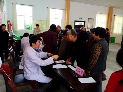 5月11日,民进建德市一院支部在建德市卫计局副书记范红杰、支部主委叶丽的带领下,赴大洋镇高垣村为村民们开展送医送药服务。
