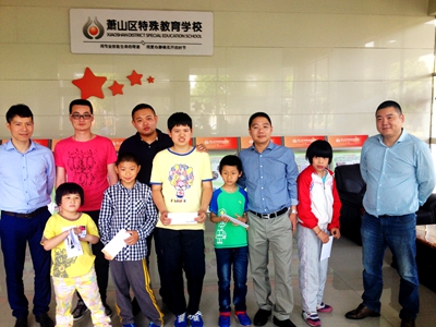 5月22日下午,民进萧山区城北支部会员、区青商会成员陆琦陪同区青商会其他四位企业家来到萧山区特殊教育学校,看望慰问结对的5位特殊贫困学生。