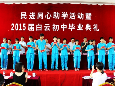 6月25日上午,民进东阳市支部在东阳市白云初中开展以“同心助学 爱心育人”为主题的同心助学金发放和首届“民进杯”美术比赛获奖作品颁奖活动。东阳市政协副主席、市委统战部部长施侍良,市教育局局长徐文金,市委统战部副部长厉建党等领导和民进东阳市支部全体会员、白云初中全体师生参加活动。