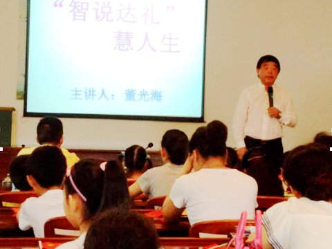 中华优秀传统文化是中华民族的精神命脉,是涵养社会主义核心价值观的重要源泉。作为国家高级礼仪培训师、国家高级礼仪(礼宾)师、全国教育专家委员会礼仪委员、中华教育艺术家协会宣教部长、建德市传统文化教育促进会会长,董光海怀揣着一颗服务社会的公益之心,将中国优秀传统文化学习心得与自己多年礼仪培训经验融合起来,把演讲技巧与礼仪知识有机结合起来,生动形象、智慧风趣的讲课深深地吸引着孩子们。经过一天的培训,孩子们的表达能力、演说能力和个人形象都有很大的提高。下课时,许多孩子依依不舍,有的当场就