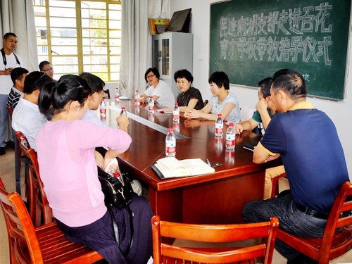 百花育才学校领导代表全校师生对民进组织关心教育、重视人才培养的义举表示诚挚的感谢,表示这样的支教活动能为新居民学校的老师提供很好的学习平台,对于提升学校的教育教学层次和整体办学水平大有益处,更可以让新居民子女更多地享受优质教育资源。