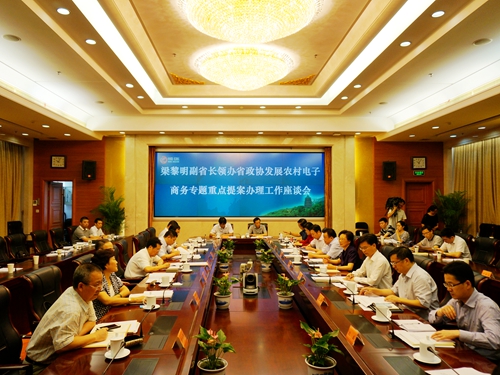 9月18日上午,“发展农村电子商务”专题重点提案办理工作座谈会在省政府1号楼举行。会议由梁黎明副省长主持,省政协副主席王建满、民进省委会副主委王健、民盟省委会秘书长汪传凯以及主办、会办单位负责人等出席会议。