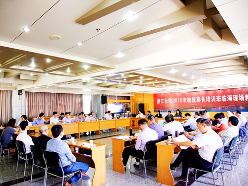 10月15日,省社会主义学院2015年全省统战部长培训班到民进临海市科技经济支部开展现场教学活动。省社院副院长隗斌贤、教务处处长沈慧虹,省委统战部干部处副处长贾宝梅参加活动。
