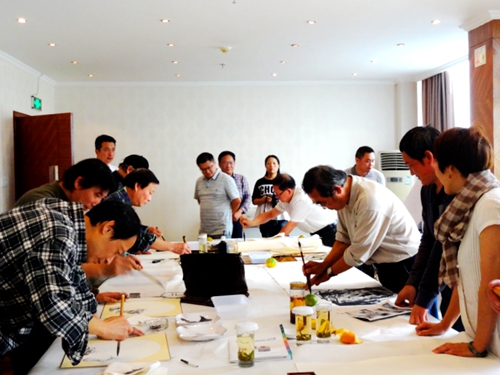 下午,两地画师在相互介绍后着手进行创作,山水、花鸟、书法,在创作中互相切磋技法,交流经验,两地画院还互赠了现场创作的书画作品。两地画院领导班子也就画院的发展方向、思路进行了意见交流和经验分享。