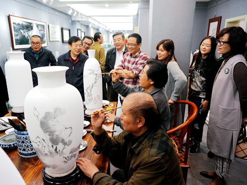 11月5日至6日,民进丽水市委会副主委何灵带领丽水开明画院一行8人到景德镇开明陶瓷书画院进行艺术交流并举行书画作品联展。民进景德镇市委会副主委戴四维,景德镇市书协主席、开明画院副院长郭立,副院长江明干、金文伟和丽水开明画院院长徐文平、丽水市书协主席王迅等参加活动。