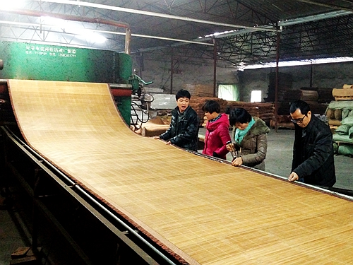 余杭区属亚热带季风气候,湿润多雨,十分适宜竹子生长,是浙江省竹子主产区之一,竹制品是其主要深加工产品,包括竹凉席、竹窗帘、竹地板、竹家俱、竹工艺品等,现在已成为区支柱产业。现场考察中,柴振林研究员针对现在竹席等产品中由于胶黏剂的使用带来甲醛超标问题、竹制品在使用过程中甲醛释放问题以及产品质量与成本的矛盾等,提出了许多建设性的意见与建议,并指出“品牌”经营是重点,“技术改进”是核心。杨柳副研究员针对染色竹席的安全性和染色均一性、色牢度以及无醛胶的使用等与杭州余杭区百丈镇吉云竹制品厂进行了重点探讨,并就低醛胶使用方面的技术开发初步达成合作意向。