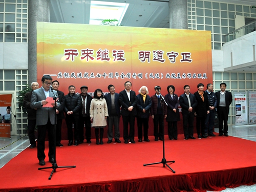 蔡秀军主委表达了对民进70年华诞的祝福,对各画院的工作表示高度肯定,并宣布画展正式开幕。