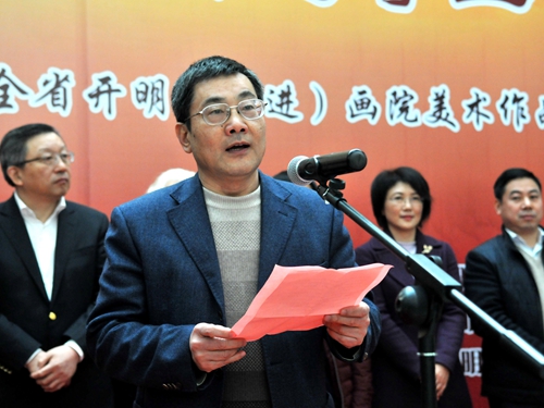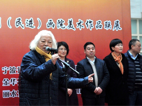民进中央开明画院副院长、浙江开明画院常务副院长沈曙宣读民进中央开明画院贺信。