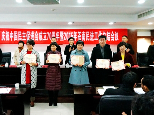 日前,庆祝中国民主促进会成立70周年暨2015年度苍南民进工作总结会议召开,会议回顾总结民进苍南县基层委员会2015年工作,并研究部署2016工作思路。县委常委、统战部长胡长虹,县人大常委会副主任高亚男参加会议。