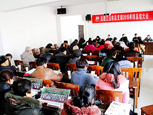 2月2日上午,民进江山市总支部召开2015年终总结大会。总支主委陈林洪,副主委毛艳萍、王小芳、柴琼颖,委员王明清、刘立忠、陈小慧、王超洋、夏天亮及全体会员50多人参加。民进衢州市委会秘书长贾仕银应邀莅会指导。会议由毛艳萍副主委主持。