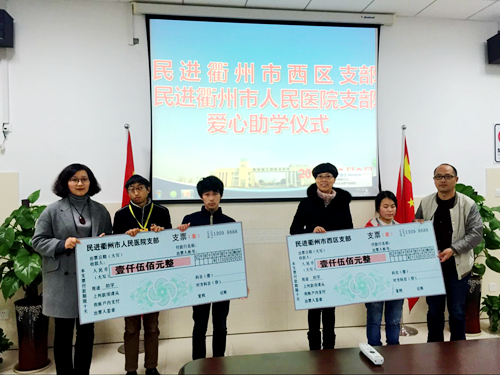 3月9日下午,民进衢州市西区支部、民进衢州市人民医院支部“爱心助学捐助仪式”在衢州市工程技术学院举行。市政协教文卫体委主任、民进衢州市委会副主委黄伟青,衢州工程技术学院党委书记杨治平,民进衢州市人民医院支部主委沈红、副主委徐慧参加活动,民进衢州市西区支部主委郑东仁主持仪式。
