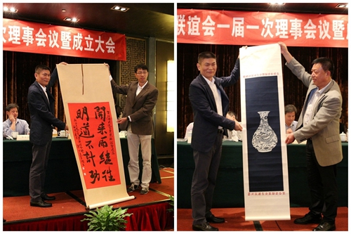 会上,赵光育为“绍兴民进企业家联谊会”授牌。王轶磊、陈月祥分别代表浙江民进企业家联谊会、嘉兴民进企业家联谊会向绍兴民进企业家联谊会赠送了精美的书画作品。