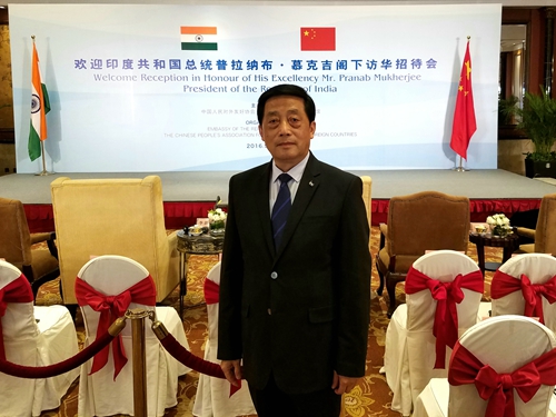 (图)浙江开明画院常务副院长沈曙应邀参加欢迎印度总统访华招待会