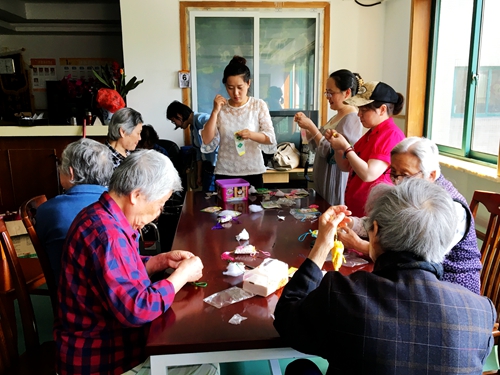 本次活动的服务对象是年龄偏大、行动不便的护理型老人。会员们为他们送上了新鲜的水果,并和爷爷奶奶们一起制作端午香囊。会员们细心指导,奶奶们耐心缝制,完美的配合,让一个个纯手工香囊精彩亮相。奶奶们拿着自己制作的香囊高兴地拍起手来,还和同伴分享自己的作品。会员们也将亲手缝制的香囊送给了一些动手不方便的爷爷奶奶,把香囊佩戴在他们身上。随后,会员们还精心准备了节目,经典的老歌串烧、气势磅礴的诗歌朗诵,走廊上不时传来阵阵笑声,院长和护工们都说,老人们已经很久没有这么高兴了。
