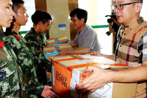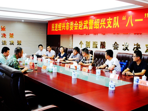 “八一”建军节即将到来之际,7月26日下午,民进绍兴市委会副主委沈荣根、社会服务处处长杨炯明,绍兴民进企业家联谊会副会长徐继承、金荣标,联谊会副秘书长俞伟青、杨海英、李欣怡等冒着烈日走进武警绍兴支队,慰问部队官兵。