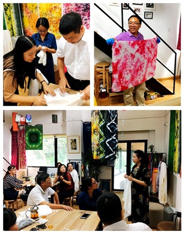 日前,民进杭州市上城区联合二支部的会员们聚集在玉皇山脚下象限文化创意有限公司,开始了丝绸扎染的“奇妙之旅”。