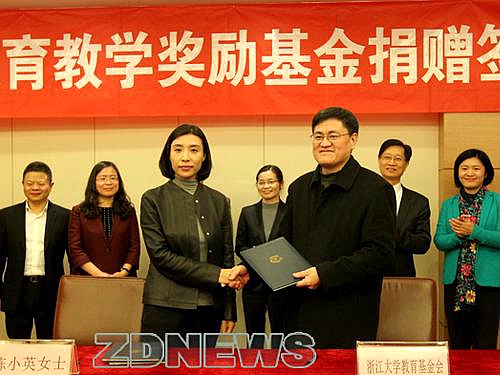 (图)省直会员陈小英向浙大捐赠4千万 设立“浙江大学教育基金会陈小英医学教育教学奖励基金”